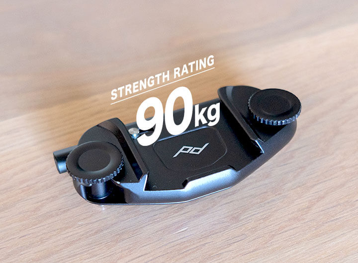 耐荷重の表記は、amazonでも銀一サイトでも見つけられなかったのですが、ピークデザインの公式サイトにありました。STRENGTH RATING 90kgです。STRENGTH RATINGを耐荷重といっていいのか自信がないのですが、自動翻訳にかけると「200ポンド(90kg)を超える重量にも耐えられます。」とのこと。ただ、バッグのストラップやベルトループに装着することを想定すると、そんなに重たいものを付けることはないと思うので、あくまで参考値としてものすごい重量にも耐えるカメラクリップと覚えておく程度で宜しいかと。