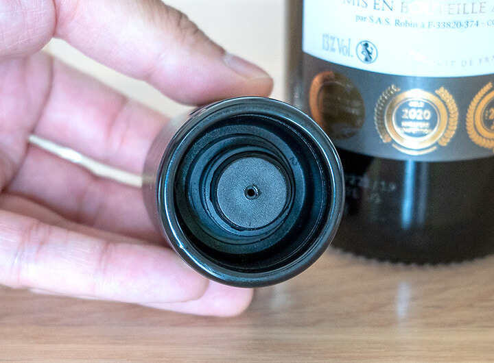 シンプルなデザインと機能で、1プッシュごとに中の空気を抜いて真空状態に出来ます。最良の状態で約7日間、鮮度を保つことが出来るようです。確かに1週間以内なら味の変化はさほど感じませんでした。試しに2週間程空けてからワインを飲んだこともありますが、さすがに酸化して味は落ちていました。このストッパーは保存期間をカウント出来る日付機能付きなので、飲むペースの目安にもなります。でも日付が若干見え難い気がしました。これは個体差があるのかもしれません。