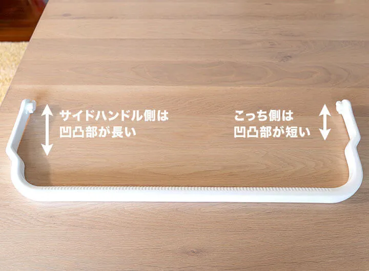 長さも充分にあり持ちやすいです。サイドハンドルにも干渉しないようにデザインされている点と、ハンドルを真上にした時に仮固定される点が良いです。ハンドルは取り外し出来ますが、クーラーの形状的に取り付けの向きは決まっていて、凹凸部が長い方がサイドハンドル側です。