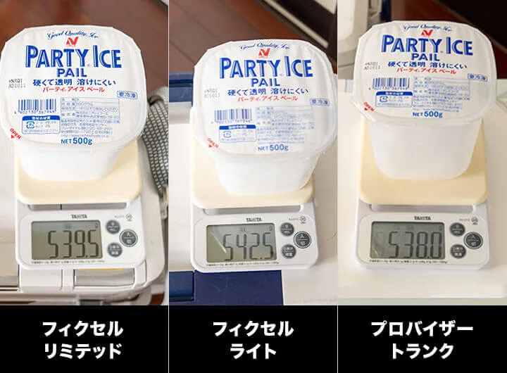 検証開始時のアイスボックスの重さは以下の通り。多少差はあるものの、このまま計測していきます。