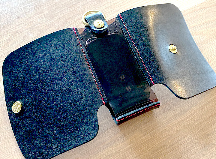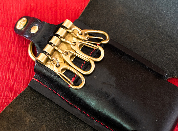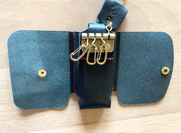 鍵の取り付けスナップは全部で4つあります。収納する鍵の大きさにもよりますがホックが閉じない場合もあるため、頻繁に使う鍵は外に出し、あまり使わない鍵は中面に収納、と購入前に想定しておいた方が良いかもしれません。