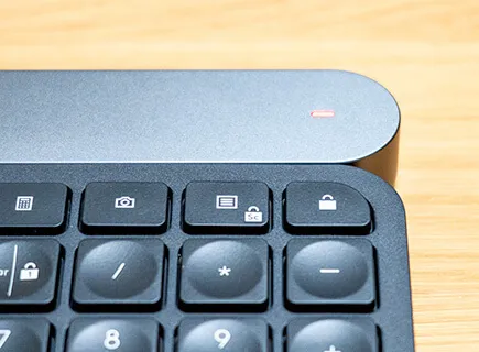 キーボードの充電が切れそうな時は赤いランプが点滅し、充電が必要なことをお知らせしてくれます。普段の使用中はランプは何も点かないので、充電が切れる時に視覚的にお知らせしてくるランプのようです。