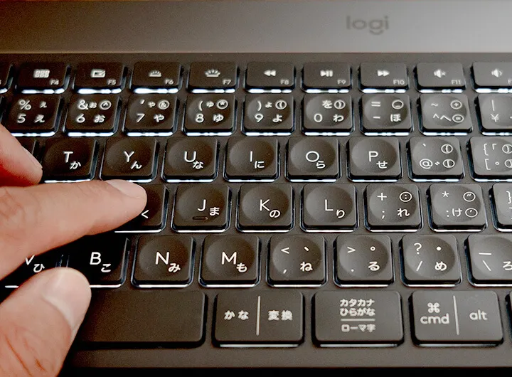 キー表記は少々ごちゃついてますが、windowsもmacも分かりやすい表記で印字されています。winとmacでは、英数/かなキーの位置が違いますが、特にキーボードの設定を変えずとも、Winに接続しているときは半角英数キーで文字変換出来て、macに接続しているときはスペースキー両隣の英数/かなキーで文字変換出来ます。