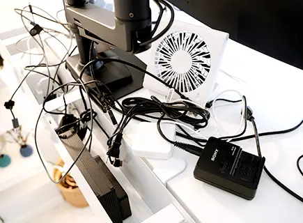 筆者のデスクは白なので、黒くてウネウネしたケーブルは悪目立ちします。だから極力見えないようにしたい。