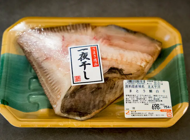 続いて見るからに脂が乗ってそうな、まとう鯛の干物。至福のひと時を698円で買えるならと思って、ちょっと奮発しちゃいました。