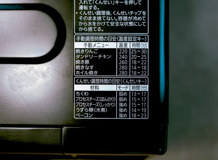- オートメニューだからタイマーのセットは不要。自動でセットされます