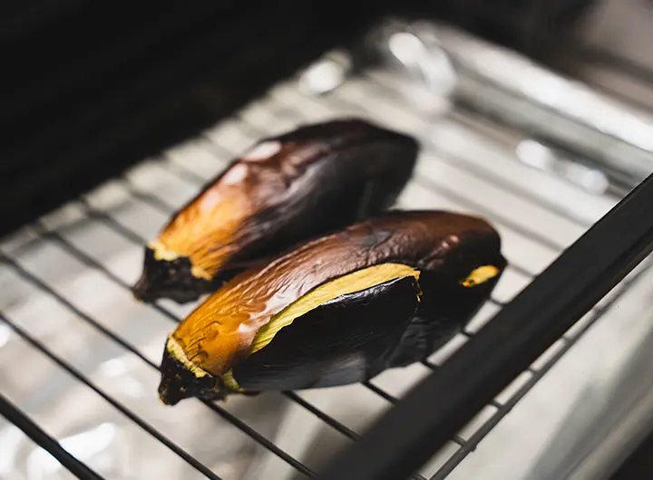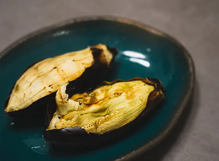 焼きなすは「280度」「14〜18分」でセット。焼き上がりはご覧の通り。皮は簡単にペリペリと手で剥けちゃいます。アツアツなので火傷に気をつけて。中身はホクホク。醤油を少し垂らして食べるとおいしいんだよな〜。