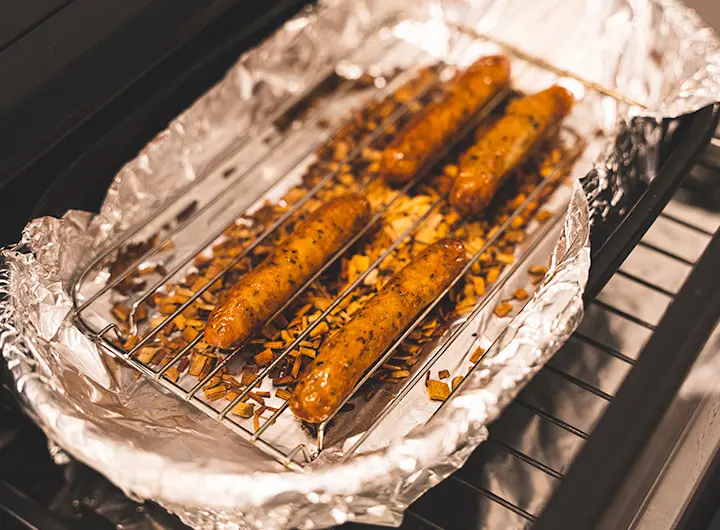 魚でも肉でも焼くときはこんな風にトレイにアルミホイルを敷いておけば、調理後の洗いものが楽ですよ。