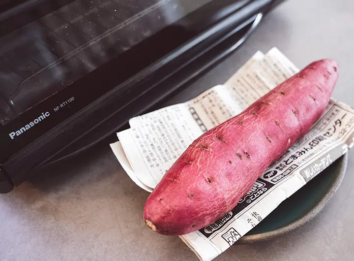 芋が大きすぎたのか、まだ芯に固さが残り、焼きが少し甘かったよう。再びオートメニューで追い焼きをセット。10分後に取り出したらちょうど良い具合になりました。