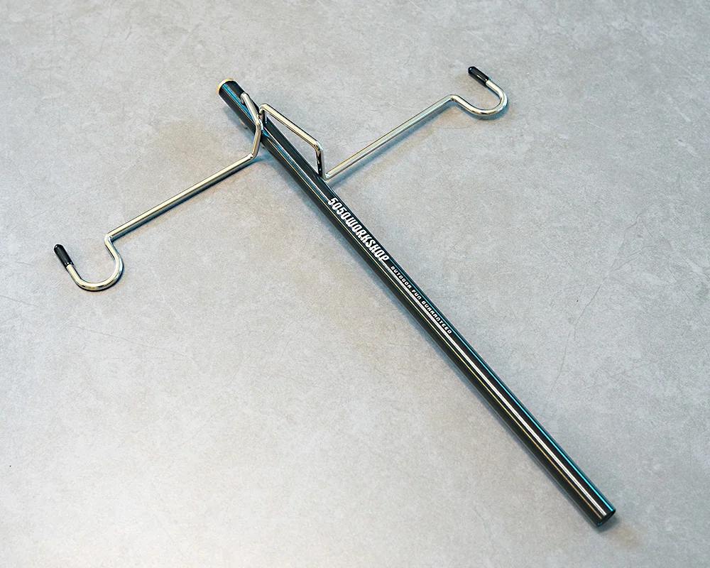 2WAY STANDはWフック仕様なので片方にランタン、もう片方にはポータブルスピーカーや蚊取り線香を吊るすことができます。フックが2つあると便利ですね。対荷重は1kgなのであまり重たいランタンは吊るせないですが、5050WORKSHOPから出ているMINIMALIGHTや過去記事でも紹介したゴールゼロ(GoalZero)といった小型のLEDライトを吊るすのに適しています。