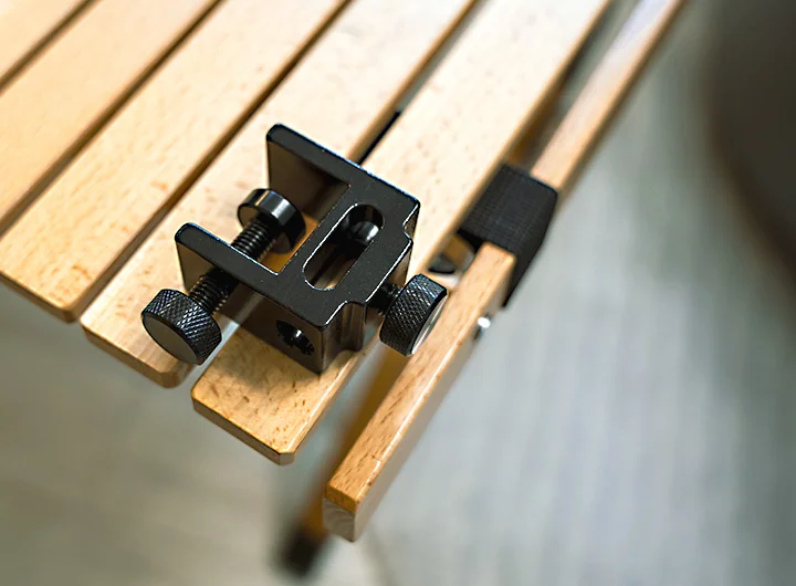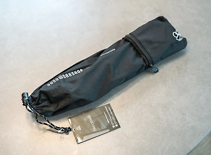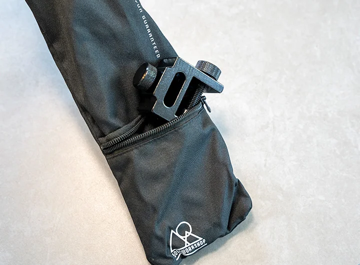 同梱物として専用の収納袋も付いています。しかもテーブルクランプを収納できるミニポケット付き。よくあるペラペラの収納袋ではなく、贅沢にも厚めの生地なので擦れや破れに強そうです。こういう細かな点まで配慮されているところに、5050WORKSHOPのこだわりや良さを感じます。