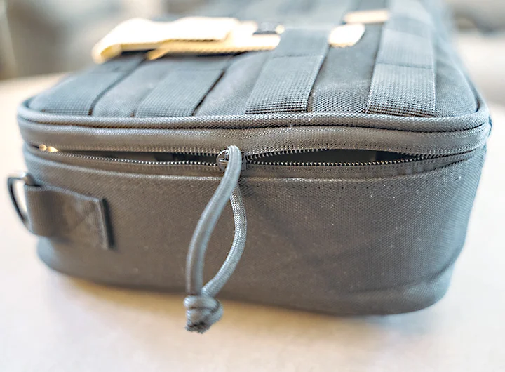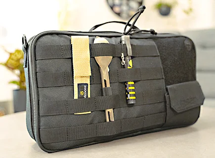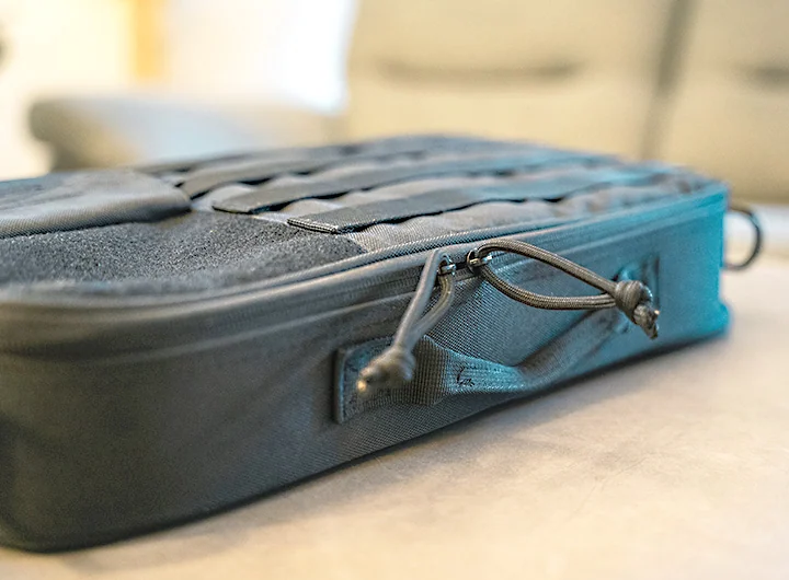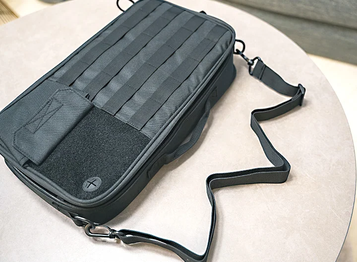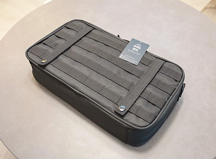 薄型コンパクト設計が特徴のため、収納力はあまり期待しない方が良いです。ただ、コンパクトながらモールシステムやストラップが付いていたり、着脱可能なポーチが付属していたりと、アレンジ次第で汎用性が高い収納ケースになっています。公式では2WAY STANDの拡張パーツであるSTAND PLATEを組み立てたまま収納するできるケースとして紹介されています。