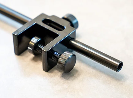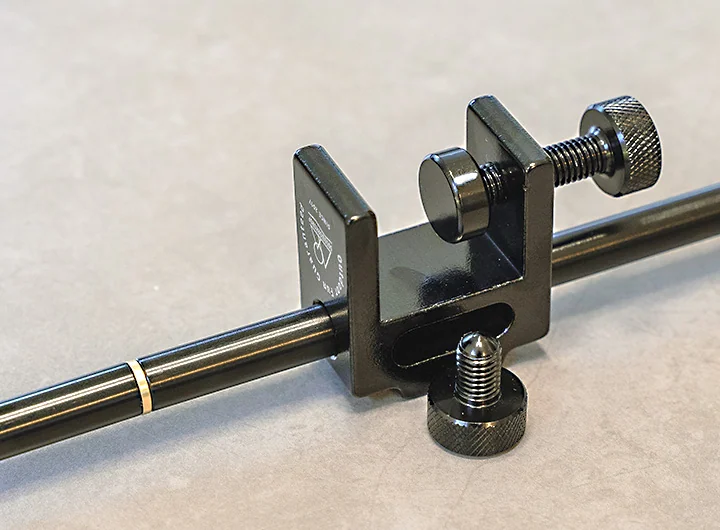 クランプの挟む部分はクッションは付いてないけれど、テーブルが傷つかないように面で固定できるタイプです。また、ポールを傷つけないようにポールを固定するネジも丸みを帯びた設計なのが秀逸です。クランプは金属バリはなく丁寧に面取りもされていて、品質の高さが伺えます。