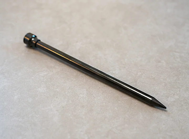 ランタンスタンドを地面に固定する場合は付属のペグを使います。鍛造ペグで強度は高いです。ペグ上部にはジョイントポールと接続するネジ穴があるので、好みの高さに合わせて使いましょう。