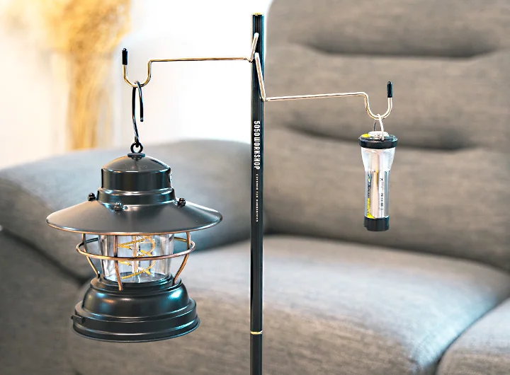 照明が目線と同じ高さだと眩しすぎるし下だと暗すぎます。そこでキャンプで必要なのがランタンスタンドという訳です。アウトドアのキャンプやBBQでは壁や天井がなく照明を吊るす場所がないため、ランタンスタンドがあれば上から照らすことができます。