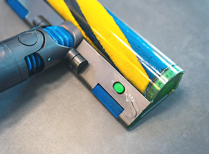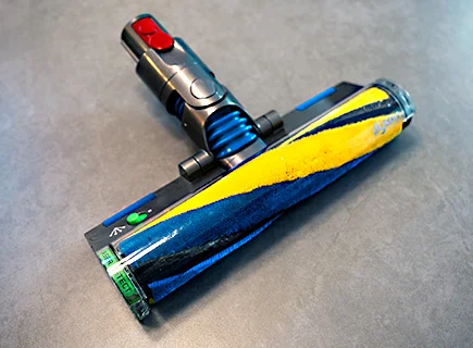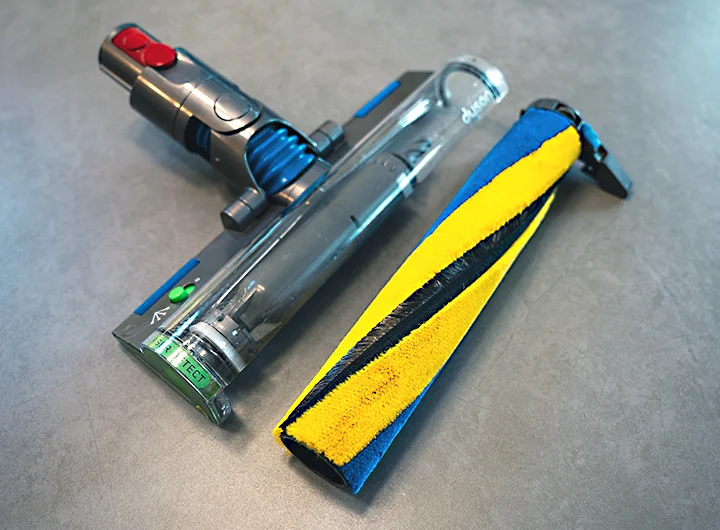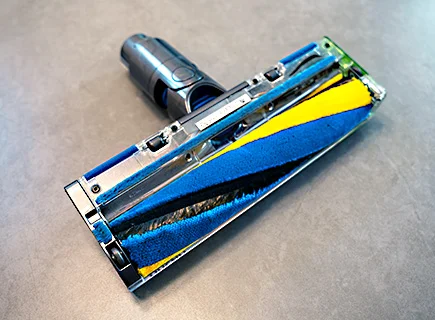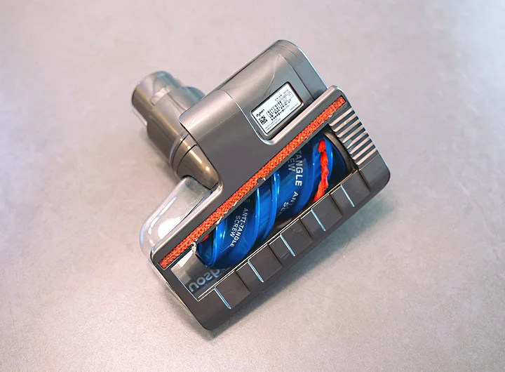 ヘッドクリーナーの回転ブラシも簡単に取り外しができるます。筆者は黒ずみや汚れが目立ってきたら、液体の洗濯洗剤で丸ごと水洗いしてます。洗浄後はしっかり乾いてから再び本体に装着するようにしましょう。
