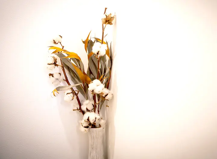観葉植物のお店へ行くと、旬の枝物が売られていることがあります。最初は生花として楽しみつつ、枯れたらそのままドライフラワーとして利用できる植物もあります。枝物はサイズも大きく存在感もあるので、パンパスグラス同様に部屋に一つ置くだけでも雰囲気がグッと良くなります。