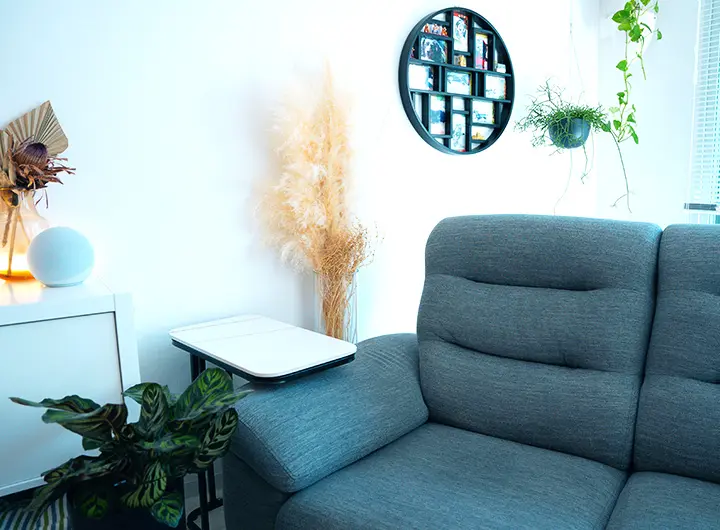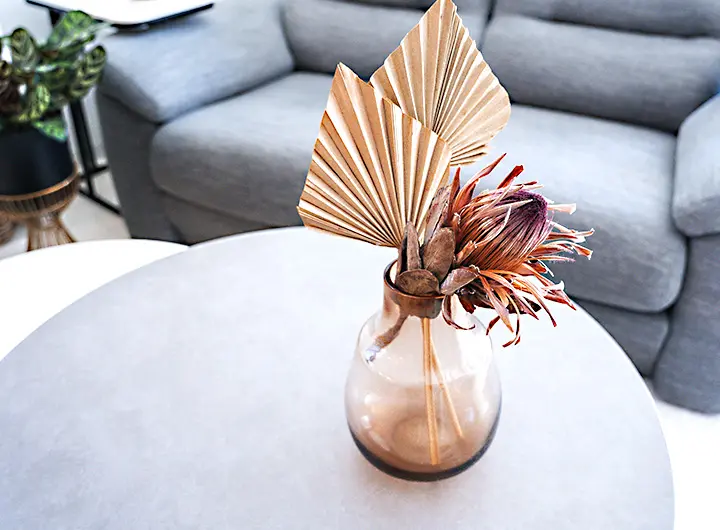 大きいサイズのドライフラワーは、ソファ裏やTVボード横など、部屋のデッドスペース(部屋の四隅や角などコーナー)に置くとアクセントになります。デッドスペースを埋めてくれるだけでなく視線誘導にもなり、おしゃれな雰囲気を演出してくれます。一石二鳥です。