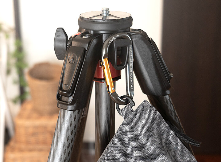 また、190go!にも三脚フックが付いているので、俯瞰撮影時のバランス調整や風の強い日の野外撮影の際に、オモリ替わりの荷物を引っ掛ければ、三脚が倒れるリスクも軽減し安定性UPです。