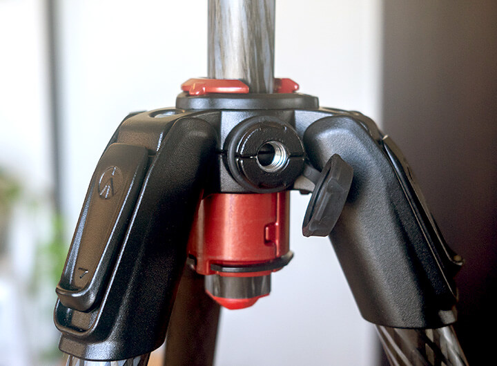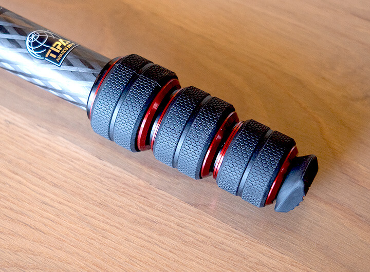 脚のロックは「Mロック」というツイストロック式です。三脚を素早くセッティング出来ること、レバー式のような突起部品がないことから、バッグなどからスムーズに出し入れしやすいことがメリットのようです。