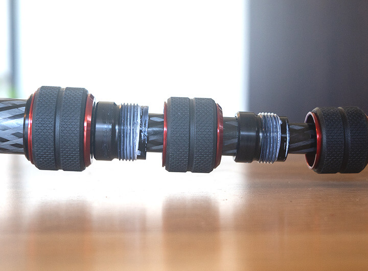 カーボンファイバー独特の柄が、そのままデザインとして仕上がっています。私は釣りが趣味なのですが、シマノ製ロッドのスパイラルXのようなネジネジ巻きが施されています。190go!も捻れや潰れに強い設計なんだと思います。