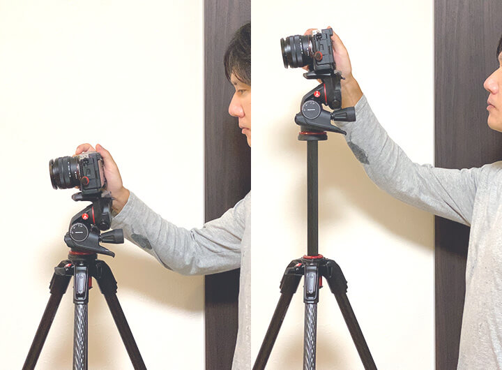 最低高は8cmで、取り付けるカメラや雲台の種類、大きさにもよりますが、ローアングル撮影も可能です。