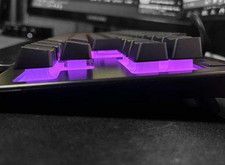 キーはメンブレン方式を採用しているので、ゲーミングキーボードに多いメカニカル方式と比べて圧倒的に静かです。