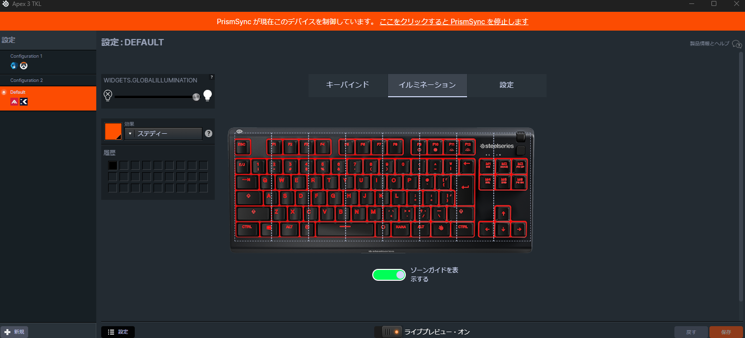 ライティングのイルミネーションがきれいで、発色パターンや色、明るさなどを専用ソフトで変更も可能です。