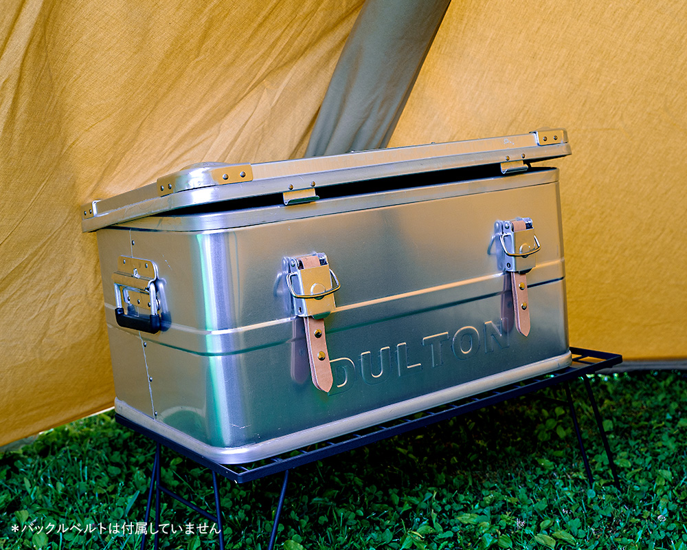カスタムはハマる要素がある。アルミコンテナをテーブル兼収納ボックスとして、それだけでパッキングを完結させる強者キャンパーもいるくらい。筆者は革ベルトカスタムしかしていないですが、メルカリで「DULTON アルミコンテナ 革ベルト」で検索すると個人売買で安く入手できます。