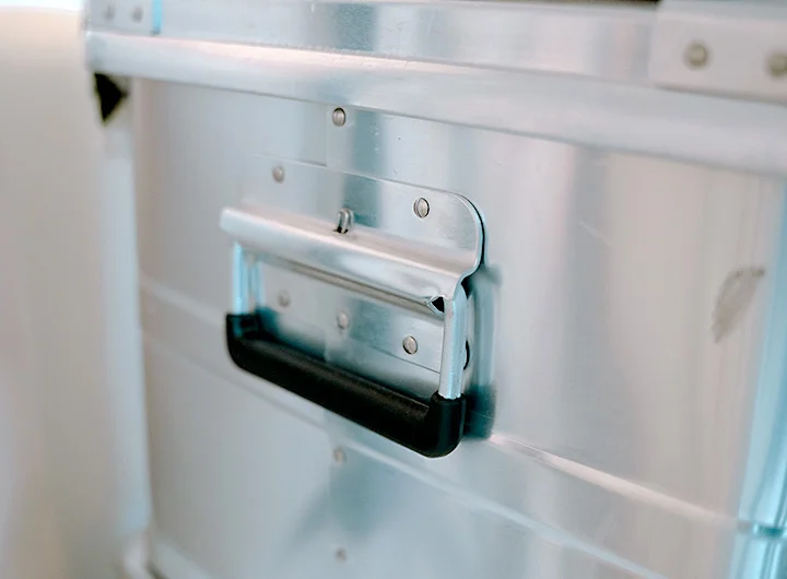 頑丈で耐久性のある金属製だから、多少乱暴にガシガシ使って大丈夫。細かい傷も経年変化として風合いや味わいに。そうして思い出の詰まったアルミコンテナに育っていく。