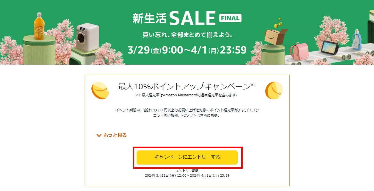 新生活SALE期間中にお得な商品をゲットし、最大10%のポイントアップを手に入れましょう。